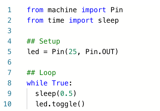 What is the "hello world" of embedded software? Why, blinking an LED, of course! In this first tutorial, we'll get you acquainted with the fundamentals of MicroPython and more importantly, the online simulator we'll be using for all the tutorials. That's right, an online simulator! No need to feel pressured to throw down money on a box of hardware gadgets to learn MicroPython - though you are certainly welcome to when you feel ready.