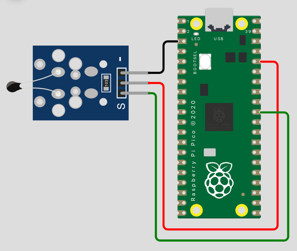 The VCC and GND pins need to be provided with power supply (3.3V output pin) and ground, respectively, from the Raspberry Pi Pico. To understand what the OUT pin is for, let's take a closer look at the components present on this sensor module.