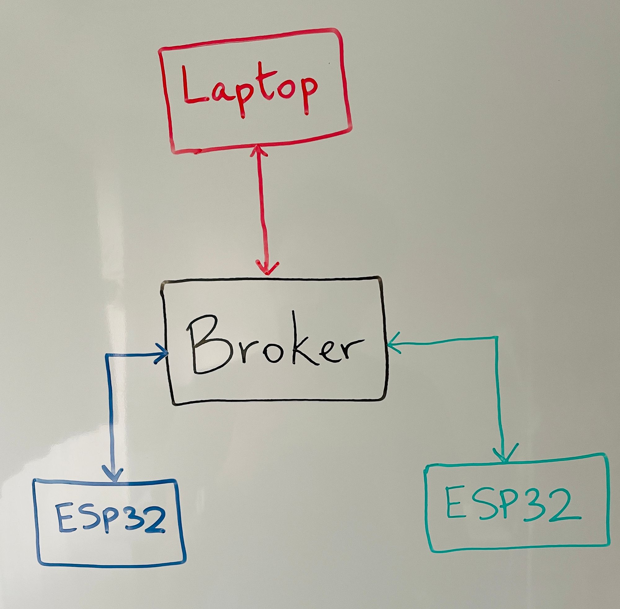 So far, we've communicated with our ESP32 in a couple of ways: USB-serial and HTTP. These protocols are great, but each has their flaws. USB requires a wire between your computer and microcontroller, and HTTP can be used wirelessly but it has a huge data overhead and it's inflexible as it requires all devices to know each other's addresses/hostnames. Enter MQTT: a low data protocol that works on regular wireless networks and allows for any number of microcontrollers, servers and computers to easily connect to each other!