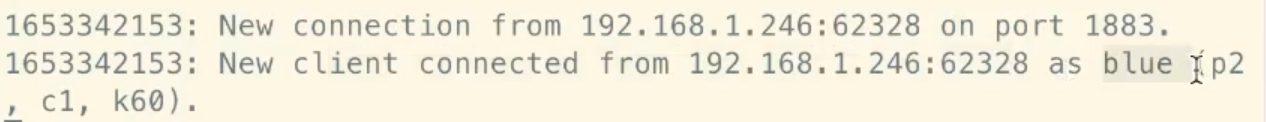 Save this main.py file to the ESP32 and restart the microcontroller. When it starts up, it should immediately connect to your broker and if everything worked, you should see a similar message to below in the terminal where your broker is running: